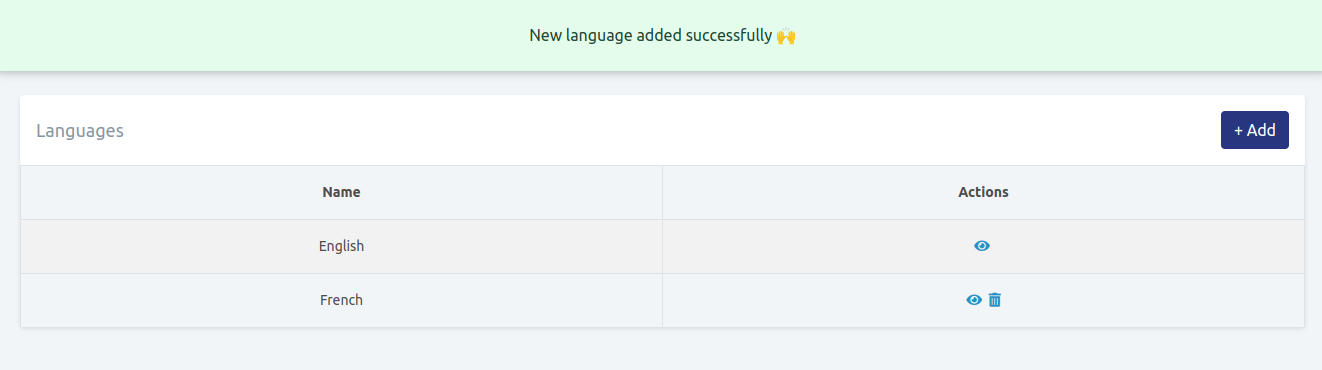- Click on the Add button to add language. Select a language you want to add and click on the Save button.